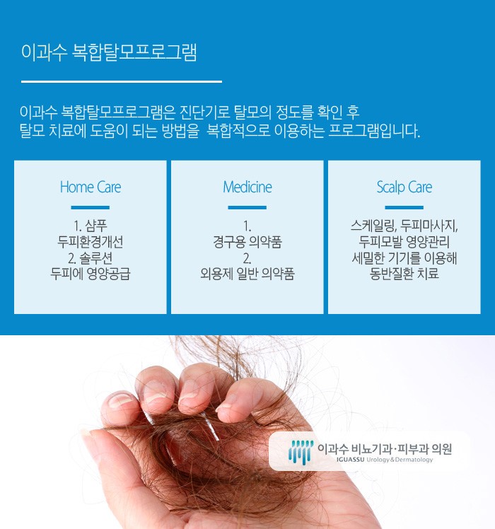 안녕하신가요. 구리탈모치료 도움을 드리고 있는 곳인 이과수 비뇨기과 피부과 의원입니다. 평소 탈모로 인한 고민이 있다면 꼼꼼한 케어를 돕고 있는 곳을 만나야 하는데요. 일상에서 홈 케어를 통해 탈모관리를 하려는 경우도 있고, 실제로 검색만 해보면 탈모에 좋다는 샴푸나 린스 헤어 영양제, 에센스나 각종 음식들을 많이 찾을 수 있습니다.